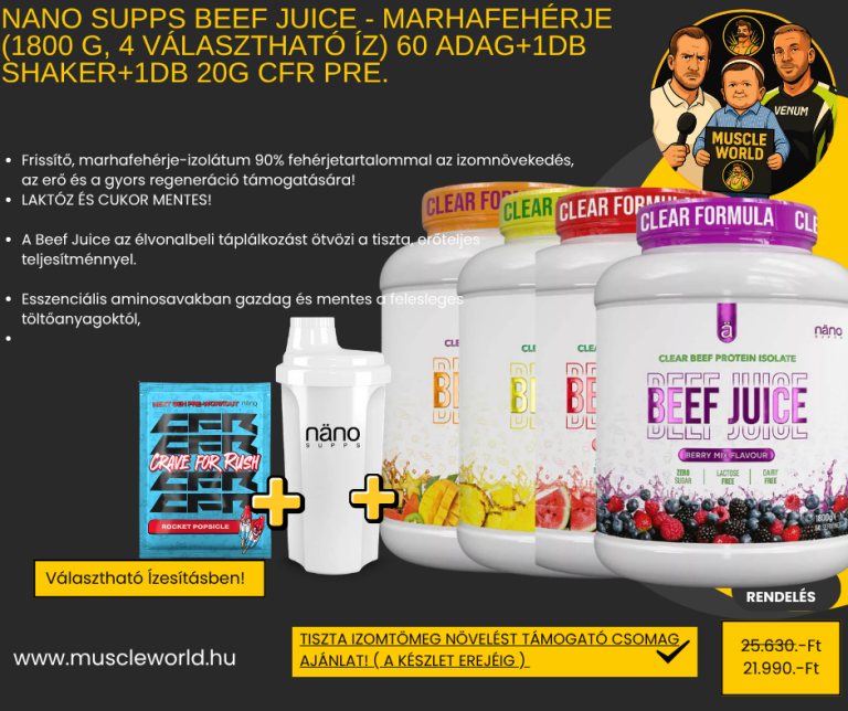 Nano supps Beef Juice – Marhafehérje (1800 g, 4 választható íz) 60 Adag+1db Shaker+1db 20g CFR Pre.