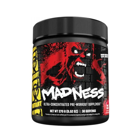 A MUTANT MADNESS egy edzés előtti stimuláns, ami egy másik szintre emeli az edzést. Csak egy célra lett teremtve, és azok a magas intenzitású edzések kompromisszumok nélkül. Készüljetek fel egy extrém energia áradatra és a teljesítmény új szintjére. Ez a prémium formula kreatin, arginin, citrilin és béta-alanin keveréke, ami csak egyet jelenthet, tökéletes felpumpálást, őrült energia adagot és egész edzés alatt való kitartást. Ezen kívül, 335 mg koffeint tartalmaz 5 különböző forrásból. Mutant Madnessnek fenomenális íze van.