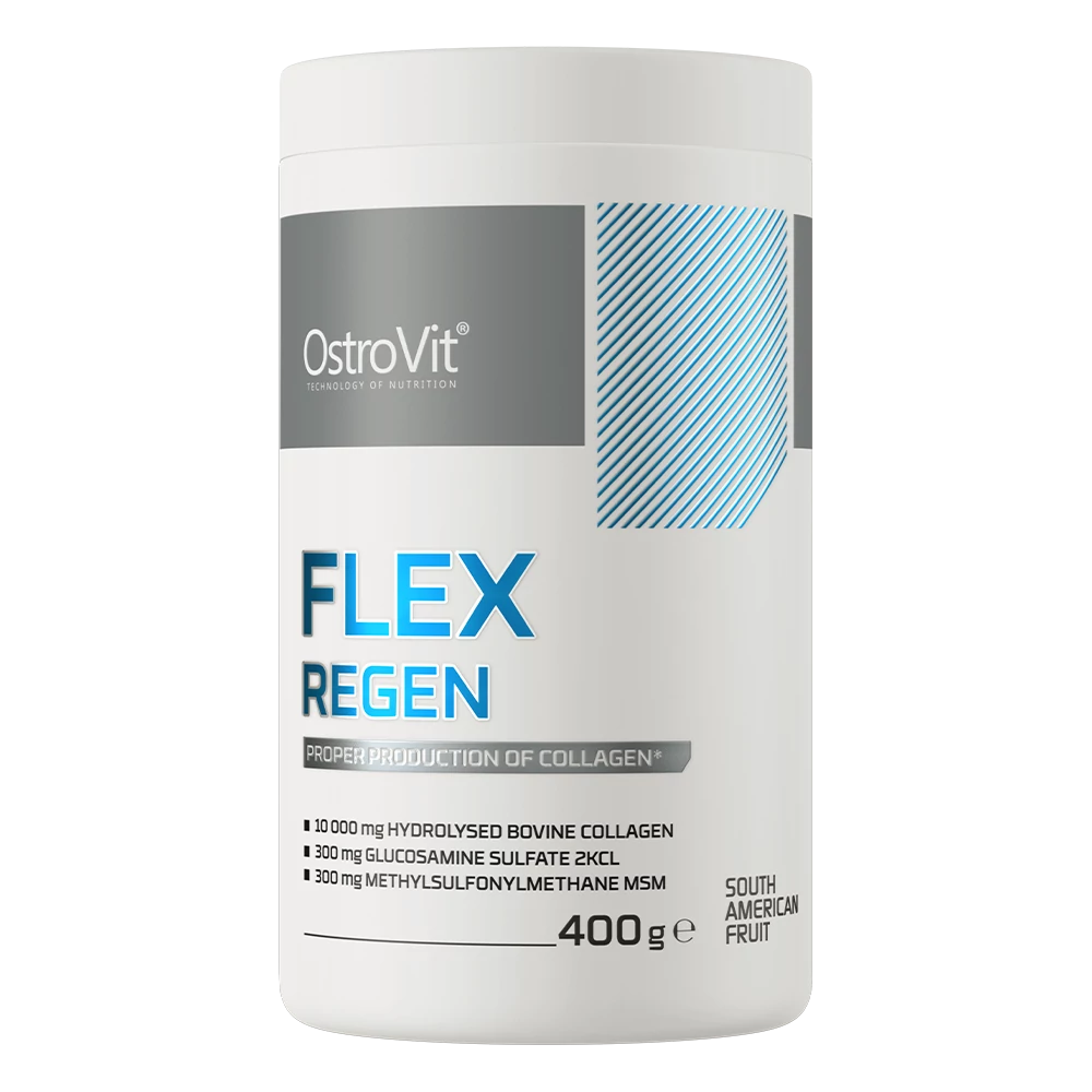 Flex Regen az egyik komplex ízületi táplálék mozgásszervi rendszer maximális gondozására. Formulája hidrolizált szarvasmarha kollagén, metilszulfonil-metán (MSM), kondroitin-szulfát és glükozamin-szulfát összetevőkkel kezdődik. Ezek a szervezetben természetesen előforduló anyagok, amelyek túlnyomórészt az ízületekben, inakban, szalagokban vagy ínszalagokban találhatók. Külső forrásból történő bevitelük a szervezet számára ideális építőanyagot biztosít a mozgásszervi rendszer ezen alkotóelemei számára.